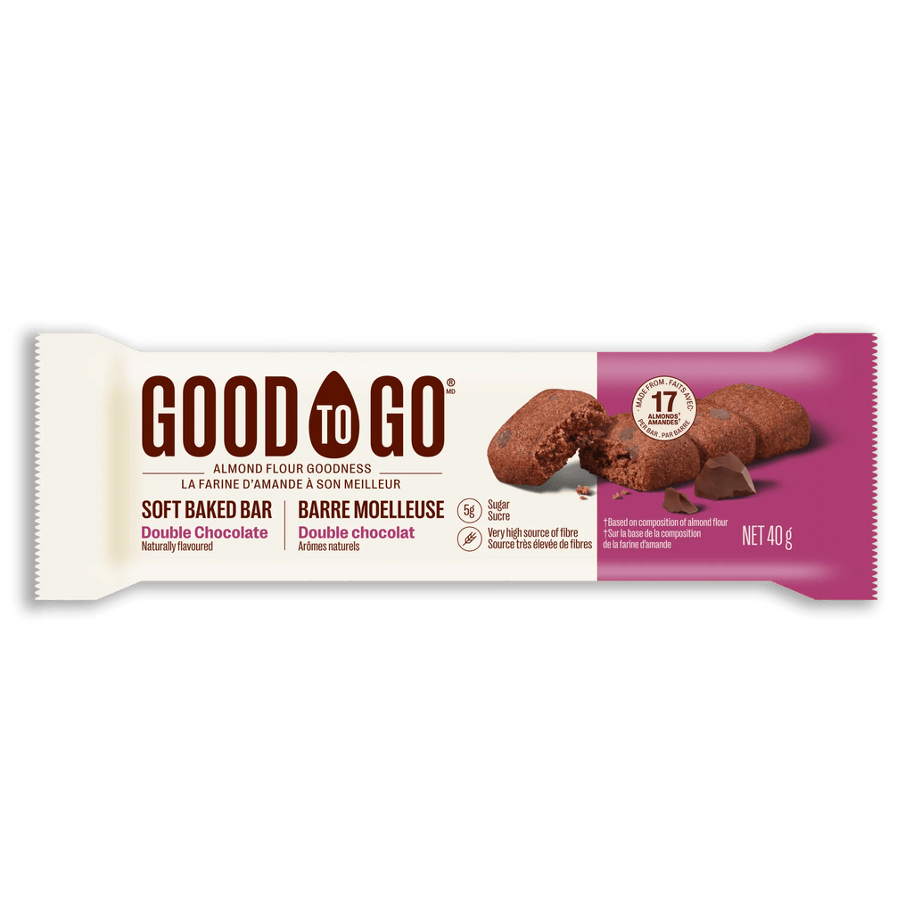 Description: Using almond flour as the #1 ingredient, Good to Go soft bars are baked here in Canada with 5g of sugar and at least 6g of fiber per bar, and are certified gluten-free. Whether you're on the go or looking for something healthy to enjoy with your coffee or tea, Good to Go offers delicious, nutritious, and responsible B Corp certified snacks that benefit our planet, our people, and our community.