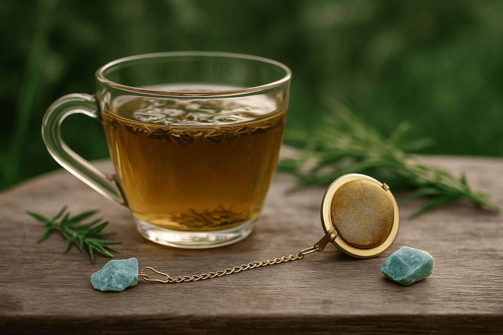 Boule à thé ou tisane couleur or avec pierre précieuse amazonite (1un)