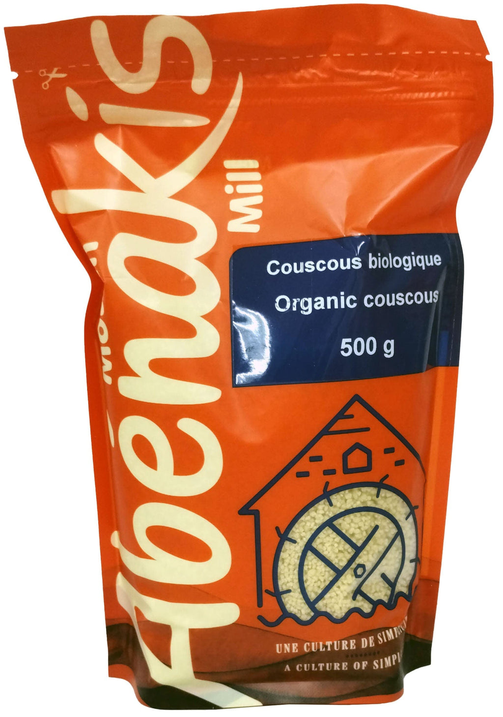 Ingredient: Organic couscous. Use: Bring to a boil. 1 ½ cups water (or broth) and 1/2 c. salt. Stir in 1 cup couscous and cover. Remove from the heat and let stand 5 to 10 minutes.