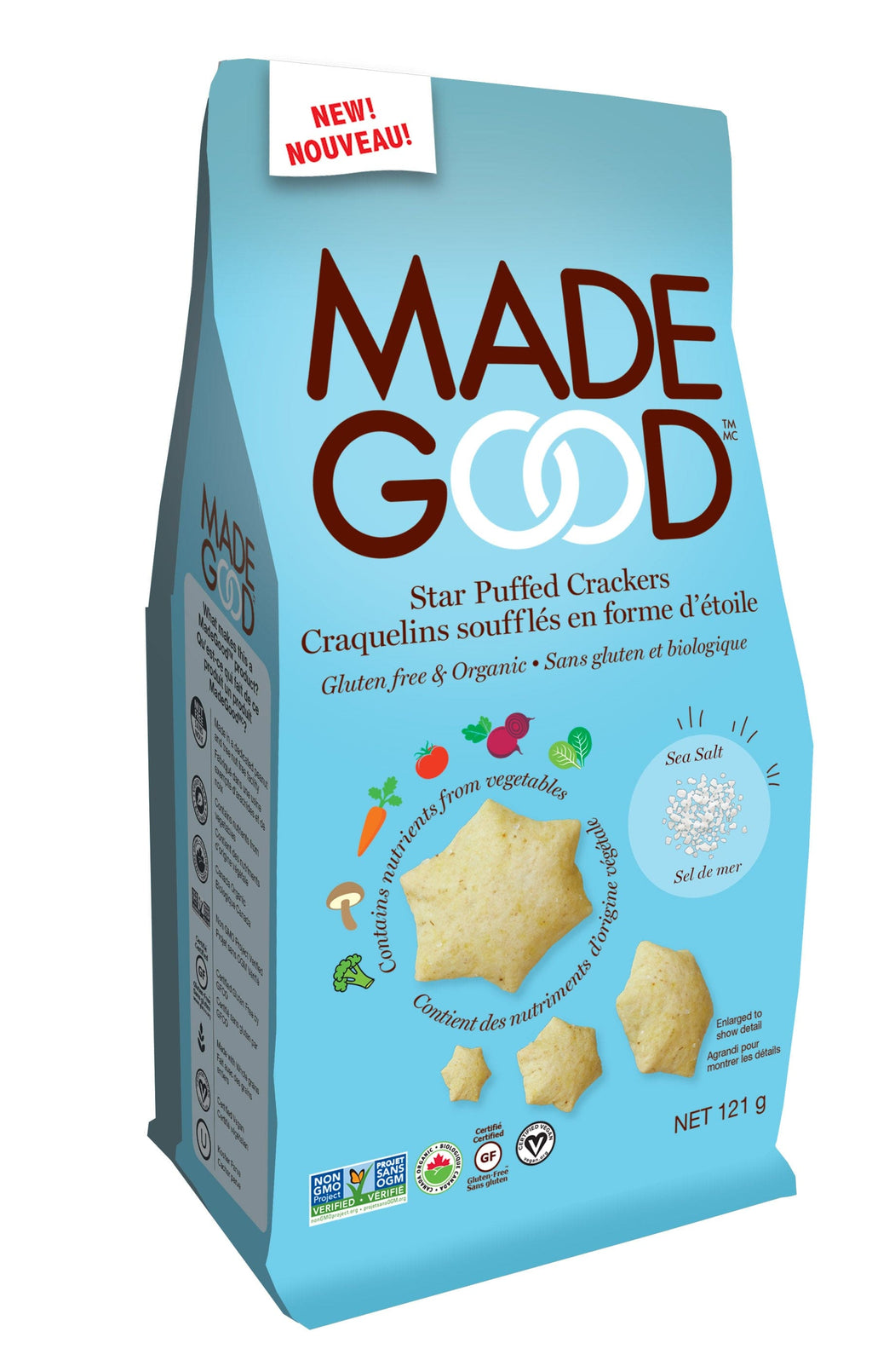 Description: Meet the snack that is written in the stars. Made Good crackers are gluten-free, organic and free from most common allergens. These snack-sized little stars are adorably crunchy and seasoned with just the right amount of sea salt. Baked with more vitamins A, D, E and B6 than your average cracker.