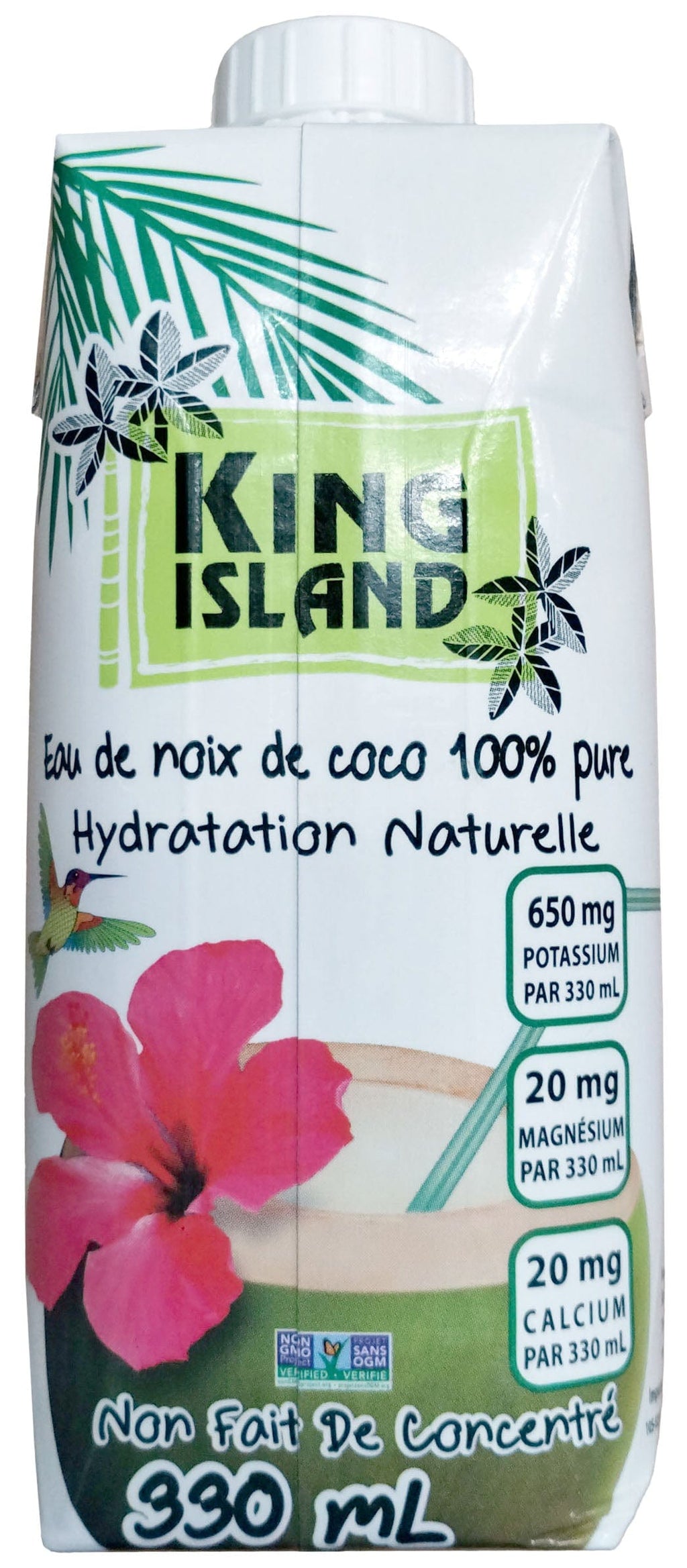 Description: King Island Coconut Water is made entirely from fresh green coconuts, all from one source. This coconut water is an excellent source of potassium and is a great way to combat dehydration.
