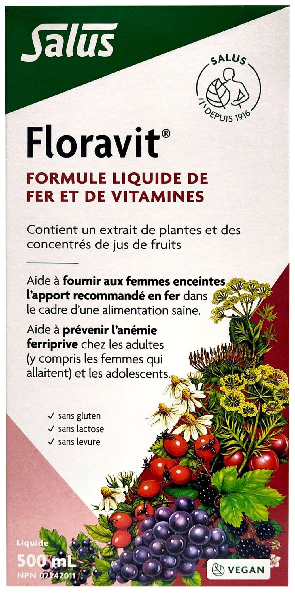 Description: Our daily iron needs are increased during pregnancy and lactation to support the healthy growth and development of the baby in utero, and to support the mother's energy levels and mood while breastfeeding. It's important to get our iron tested during pregnancy and six to eight weeks postpartum so we can adjust our diet and supplements to reach and maintain healthy levels. Because iron deficiency is common during pregnancy 3 and can increase the risk of complications for both mother and baby, Health Canada recommends daily iron supplementation of 16–20 mg during pregnancy. Floravit provides the recommended daily dose of iron with a synergistic blend of B vitamins and nutrient-dense food extracts to improve the absorption, digestion and effects of iron in the body. Floravit is safe during pregnancy and breastfeeding, is gentle on the digestion, alcohol-free, artificial colors or flavors, yeast-free, dairy-free and gluten-free, and it is vegan. Floravit is formulated to support the health of mother and baby during pregnancy and throughout breastfeeding.