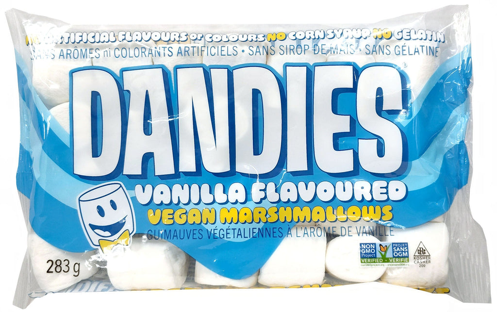 Description: Light and fluffy gluten-free Dandies melt like regular marshmallows. They make perfect Rice Krispie treats, and they even catch fire just like traditional marshmallows. Non-GMO, gluten-free, vegan, dairy-free and wheat-free.