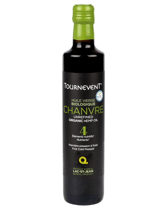 Description: Organic oil from first cold pressing, made from our cultivation of organic hemp seeds processed on site, at Ferme Tournevent. Hemp oil contains antioxidants and its consumption provides many health benefits. Among these, it is known to have properties for countering bad cholesterol, as well as improving the functioning of the brain and nervous system. A balanced diet includes between 28% and 38% of fat per day, i.e. a daily intake of 2250 calories. A healthy diet ideally includes a variation of vegetable oil sources. The flavor of our oil is unique and varies subtly each year depending on the climatic conditions specific to our boreal region. Like a good wine, each bottle reveals aromas typical of the boreal land