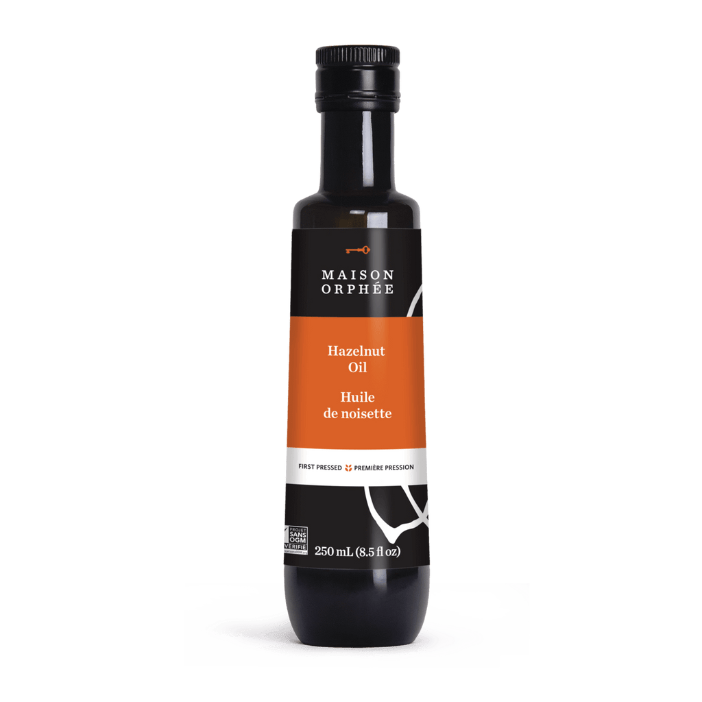 Description: This oil always brings back memories: its aroma is reminiscent of the chocolate and hazelnut spread so popular at breakfast. It is made with choice hazelnuts crushed with a stone grinder and cold pressed in a hydraulic press. It's an art that requires patience, dexterity and experience to ensure that every small batch results in a big oil. It deliciously flavors pancake batter. It goes simply with white balsamic vinegar for a perfect green salad. Non-GMO, hazelnut oil is rich in omega-9, just like olive oil, which makes it a very stable oil.