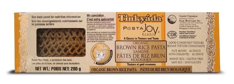 Description: Tinkyada Brown Rice Pasta is gluten-free, wheat-free. Can be cooked like ordinary pasta, they have a perfect texture. Ingredients: Brown rice, rice bran, water.