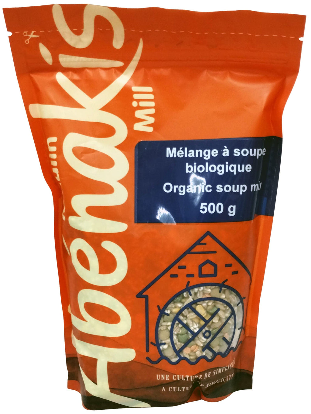 Ingredients: Organic hulled barley, organic brown rice, organic split peas, organic lentils. Directions: Rinse with cold water. Add 1 cup of soup mix, 10 cups of water or broth of your choice, 3 cups of vegetables and simmer for 2 hours.