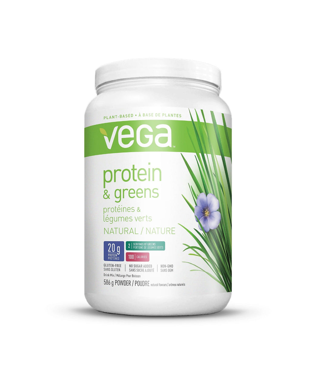 Ingredients: Vega Protein Blend (pea protein, savi seed protein, hemp seed protein, sprouted whole grain brown rice protein), Vega Greens Blend (baby alfalfa sprouts powder, spinach powder, broccoli powder, organic kale powder), Papaya Concentrate Powder (contains naturally occurring enzymes), Xanthan Gum, Stevia Leaf Extract.