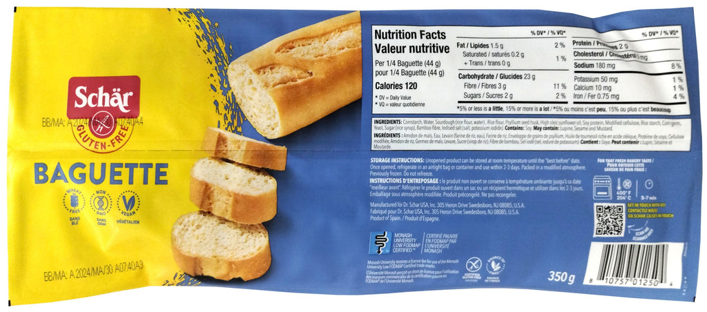 Description : La baguette sans gluten Schär vous offre un goût délicieux et authentique. Une baguette délicieusement croustillante dès la sortie du four.