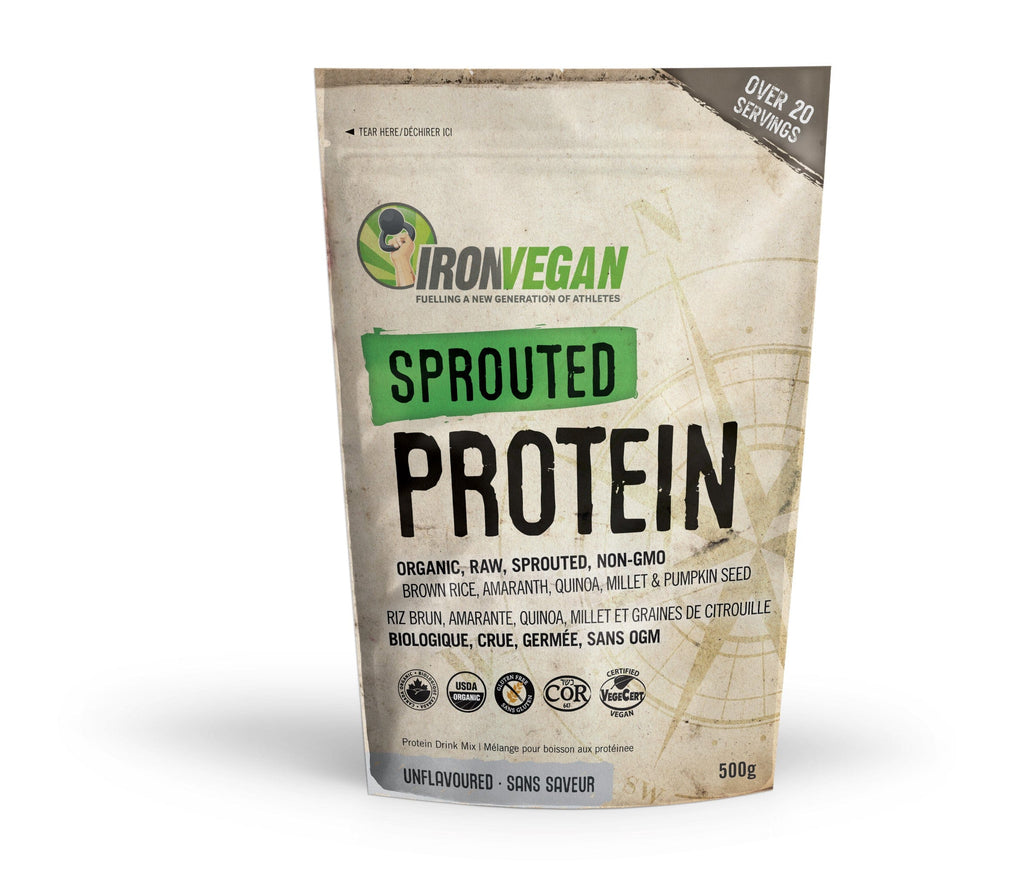 Description: Iron Vegan Sprouted Protein provides 17 grams of all-natural plant-based protein to nourish and support your body so you can achieve your fitness goals. This plant-based protein comes from 5 organic, non-GMO sprouted grains and seeds, providing all 9 essential and non-essential amino acids. Each of the 5 proteins (Organic Sprouted Whole Grain Brown Rice, Organic Sprouted Quinoa, Amaranth, Millet and Pumpkin Seeds) has been sprouted at room temperature for better nutrition and impact on your performance.