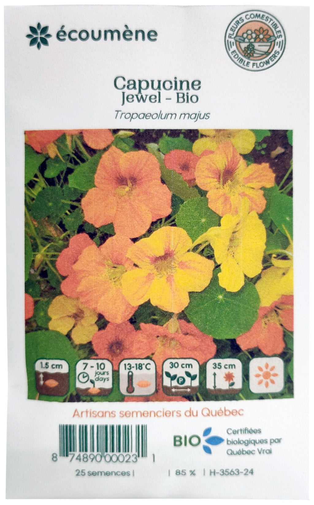 Description: This nasturtium blooms all summer and reaches 35 cm in height. In addition to the beauty of its yellow, orange, or red flowers, it is grown for the good, spicy, aromatic flavor similar to that of watercress of its leaves and flowers. They are added raw to salads while the flower buds and young fruits, also with a spicy flavor, can be preserved in vinegar. Nasturtium is also used as a companion plant to repel harmful insects. It is difficult to transplant.