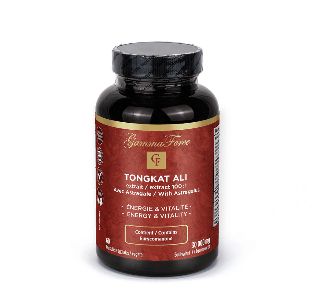 For maximum effectiveness, Gamma Force has carefully selected a Tongkat Ali extract with a stable 100:1 ratio, providing between 1% and 1.3% eurycomanone. This is combined with a 20:1 extract of astragalus root. Each capsule contains the equivalent of 30,000 mg of dried Tongkat Ali root, providing an optimal concentration of all the active molecules in the root, and the equivalent of 2,000 mg of dried astragalus root.