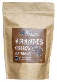 ________________________________________Ingrédients : Amandes biologiques européennes crues, pré-germées et déshydratées, tamari biologique sans blé: soja bio, sel, alcool bio (pour préserver la fraîcheur du tamari).