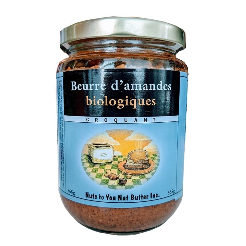 Description: Le beurre d’amandes croquant biologique de Nuts to You est tout simplement irrésistible! Délicieux au petit déjeuner sur les tartines, il fera de vos matin, votre moment préféré de la journée. Ce beurre est conçu à partir d’ingrédients de première qualité et sans pesticide.