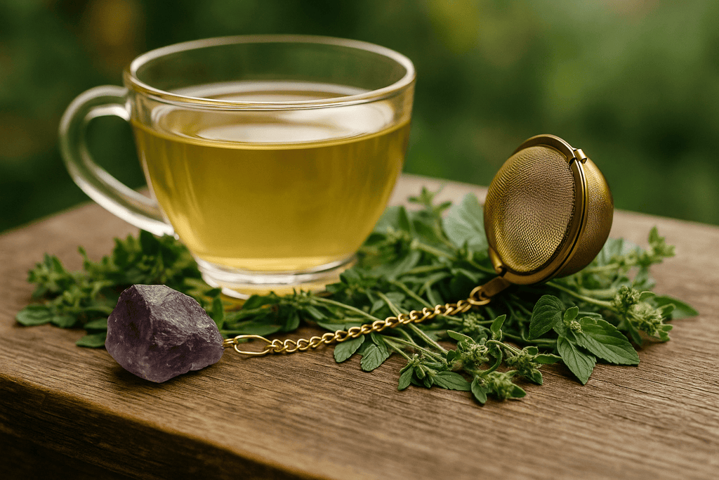 Boule à thé ou tisane couleur or avec pierre précieuse améthyste (1un) / Gold tea or herbal tea infuser with amethyst gemstone (1 unit)