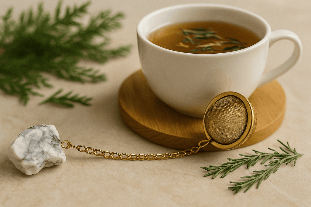 Boule à thé ou tisane couleur or avec pierre précieuse howlite (1un)