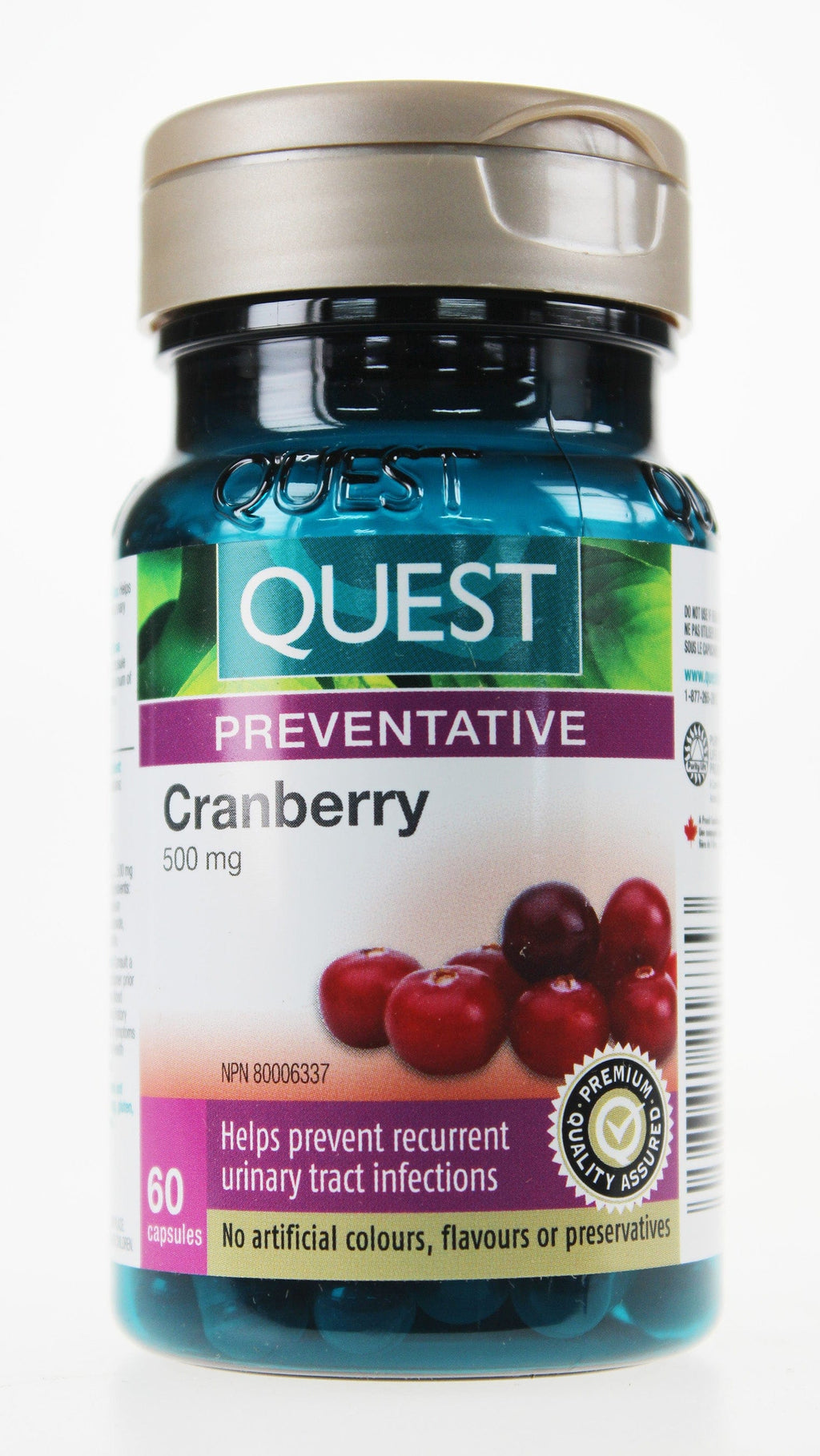 Description : L'extrait de canneberge Quest® est un remède naturel exceptionnel pour la prévention des infections des voies urinaires (IVU). Les infections urinaires sont causées par des bactéries, en particulier Escherichia coli, qui adhèrent aux cellules qui tapissent la vessie. L'extrait de canneberge empêche l'E. coli d'adhérer à la muqueuse de la vessie.