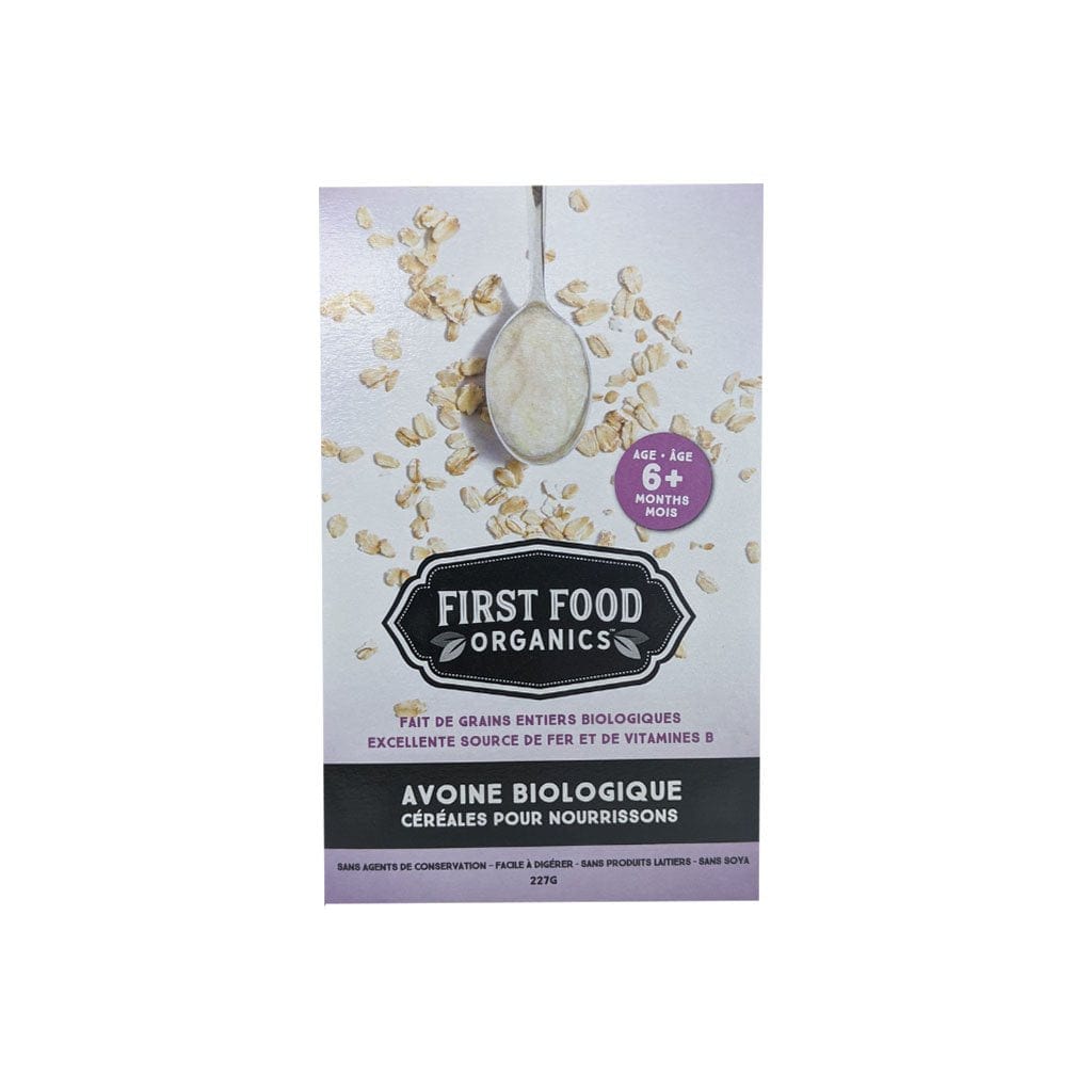 Description : Faites de grains entiers à 100% et certifiées biologiques, les céréales d'avoine biologique First Food Organics sont enrichies de vitamines et de minéraux. Excellente source de fer et de vitamines B, elles conviennent aux bébés à partir de 6 mois. Sans agent conservateur, facile à digérer, pas de produits laitiers et sans soya