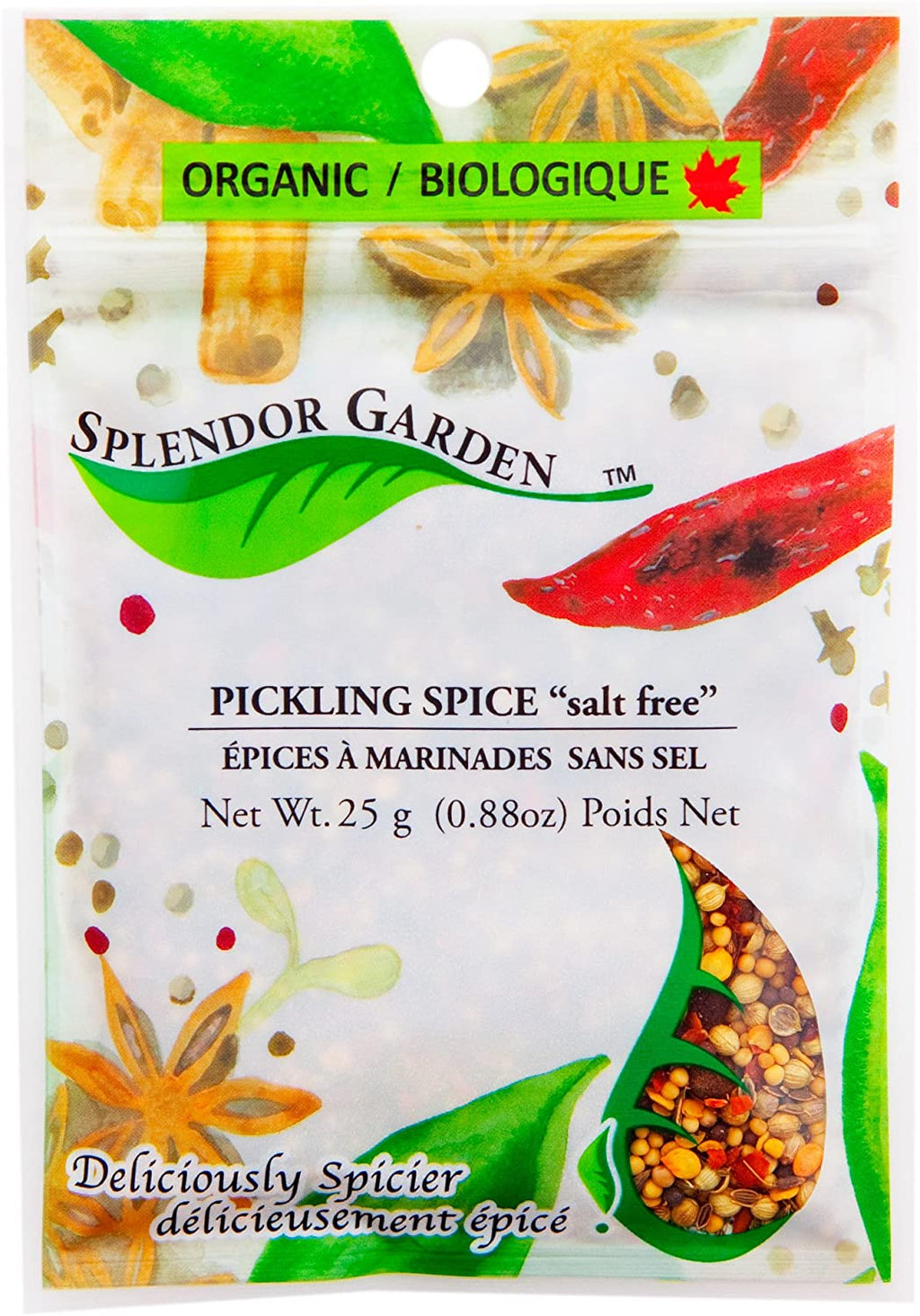 Ingrédients : Graine de coriandre biologique, aneth biologique, graines de moutarde biologique, graine de céleri biologique, piments forts biologiques, cannelle biologique poivre noir biologique, piment de la jamaïque biologique, clou de girofle biologique, feuilles de laurier biologique.