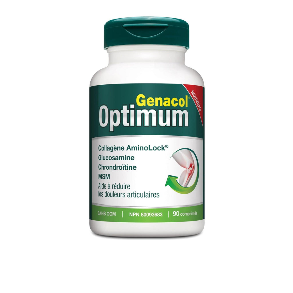 Description : La solution 4-en-1 Genacol Optimum est maintenant aussi offerte en comprimés ! Avec Collagène AminoLock, Glucosamine, Chondroïtine et MSM, 4 ingrédients essentiels au maintien de la santé articulaire. Genacol Optimum régénère, lubrifie, soulage et protège vos articulations.