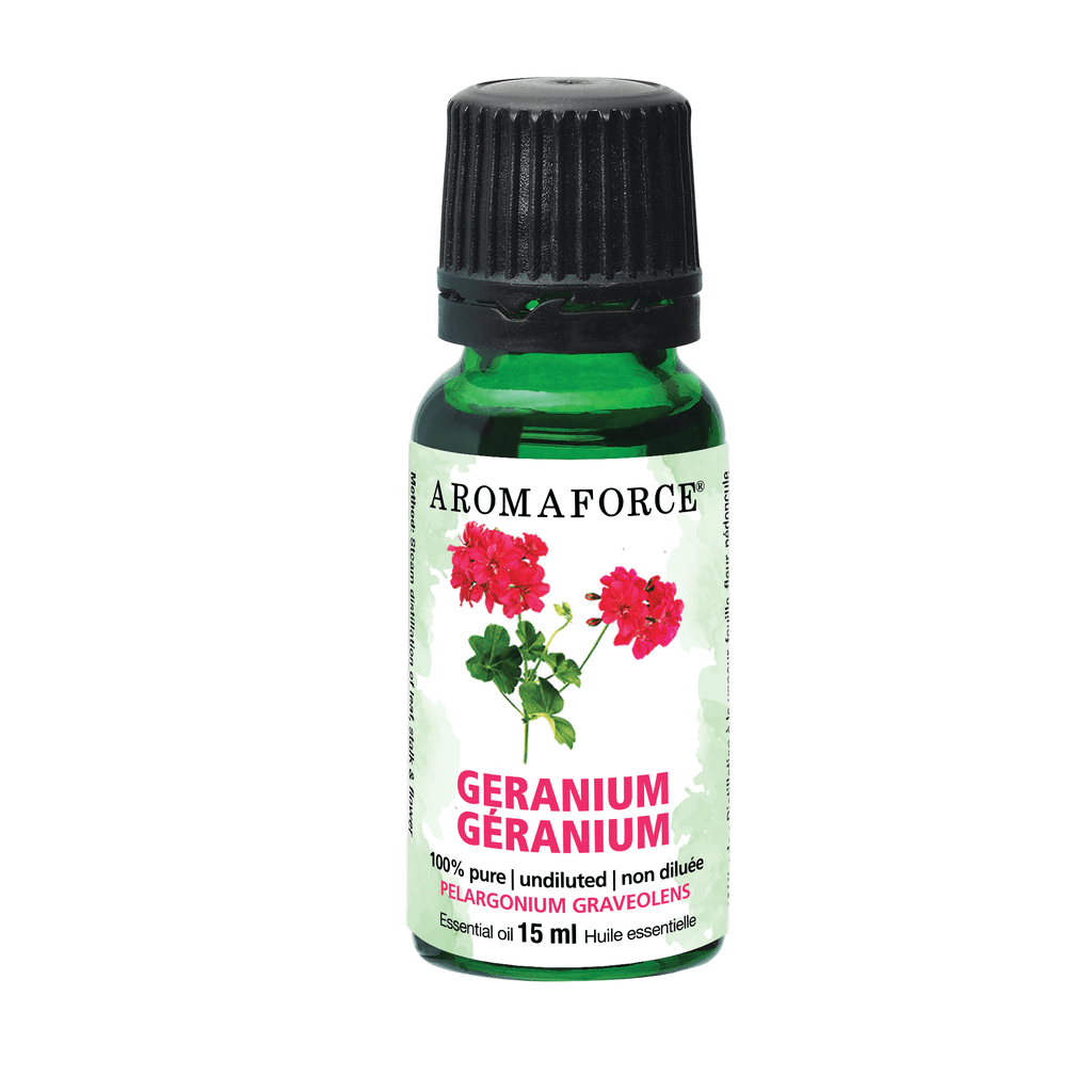 Description : Huile essentielle de géranium (pelargonium graveolens) - partie distillée : feuille. Parfum agréable, semblable à celui de la rose. Huile essentielle non-diluée.