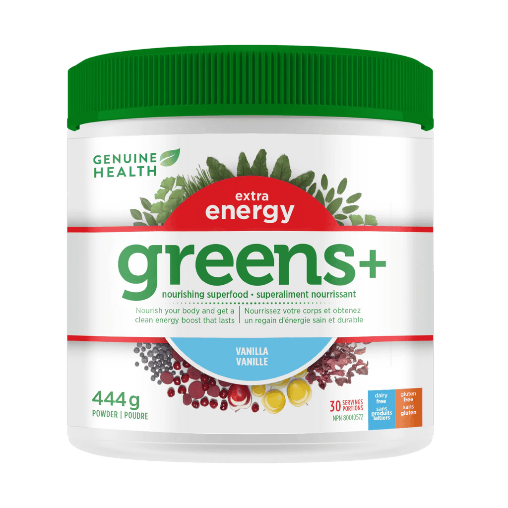 Description : Greens+ extra energy a été élaboré pour vous fournir un apport énergétique pur, naturel et continu. Le mélange de 11 superaliments améliore l’énergie et comprend de l’extrait de thé vert japonais et de l’extrait de luzerne biologique. Chaque portion contient plus de phytonutriments que ce que vous obtiendriez d’un régime alimentaire normal, même si vous mangiez beaucoup de fruits et de légumes! Une seule portion quotidienne de greens+ extra energy, en plus d’être commode, offre des vitamines, des minéraux, des antioxydants et des acides aminés puissants pour fournir l’énergie, l’endurance et une performance athlétique de pointe sans éprouver de creux.