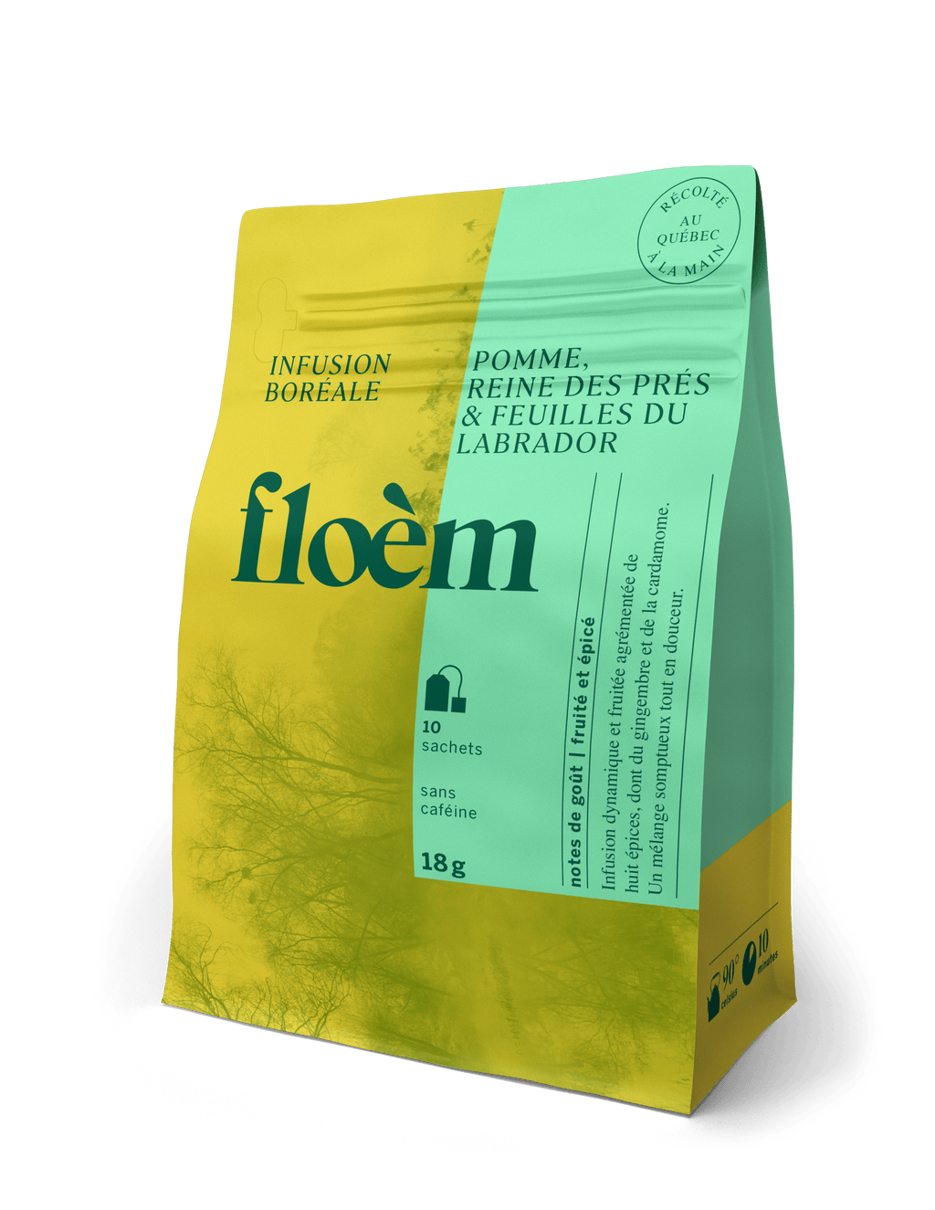 Ingrédients : Pomme biologique, thé du Labrador sauvage, hysope biologique, reine des prés biologique, 9 épices.