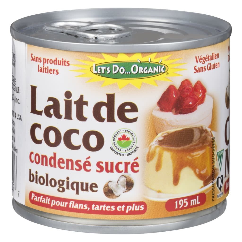 Description : Sans produits laitiers, ce lait de coco condensé sucré de Let's Do Organic est un parfait substitut pour vos recettes de pâtisseries. Utilisez-le dans vos gâteaux, desserts ou ajoutez-en une cuillère dans votre café du matin. Certifié biologique par Quality Assurance International, sans gluten et sans OGM.