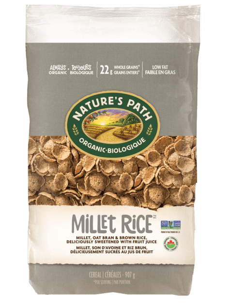 Description : Composées de flocons délicieusement croquants, nos céréales Millet Rice offrent les bienfaits de l’avoine et du millet. Soigneusement préparées pour ceux qui veulent faire de meilleurs choix alimentaires, ces céréales contiennent 22 g de grains entiers par portion et sont sucrées avec du jus de poire. Ne contenant pas de sucre raffiné, de blé, ni de maïs, ces céréales sont biologiques, végétaliennes et sans OGM. Avec du lait ou comme base pour votre bol-déjeuner, nul doute qu’elles vous aideront à commencer votre journée du bon pied.
